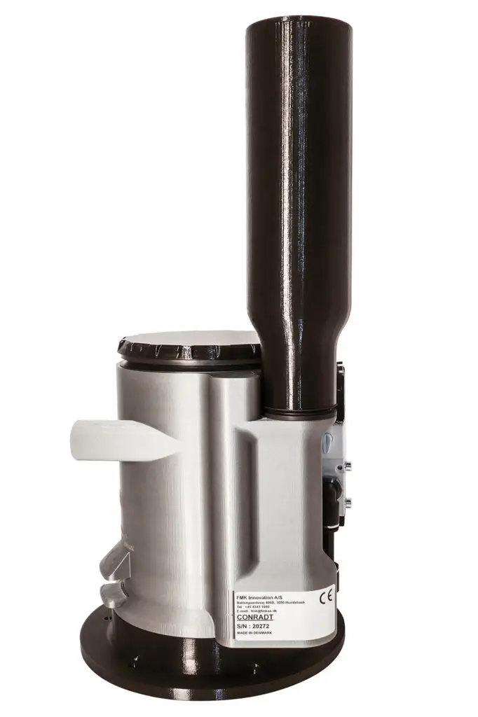 CONRADT has a weight of only 1.200 grames and is supplied ready to operate including 3 meters of conveying hose, stainless suction pipe, 2 hose clamps, mounting flange with selflocking bajonet connection, power supply and cable.